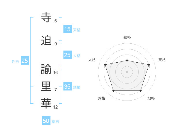 寺迫 諭里華さんを姓名の画数から五運を鑑定