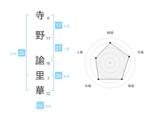 寺野 諭里華さんを姓名の画数から五運を鑑定