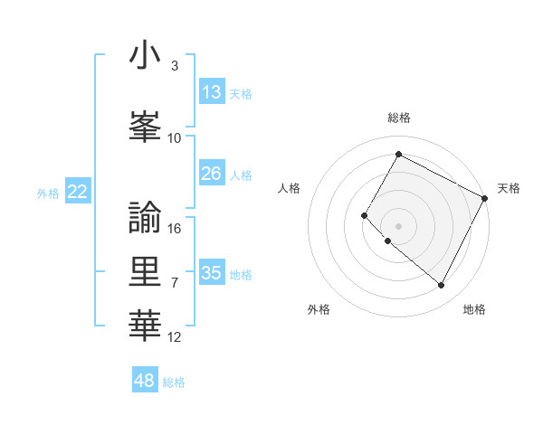 小峯 諭里華さんを姓名の画数から五運を鑑定
