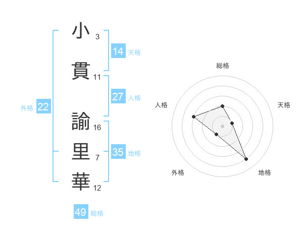 小貫 諭里華さんの天格は14画の1点!
