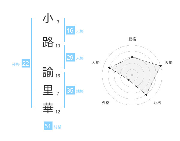 小路 諭里華さんの総格は51画の3点!