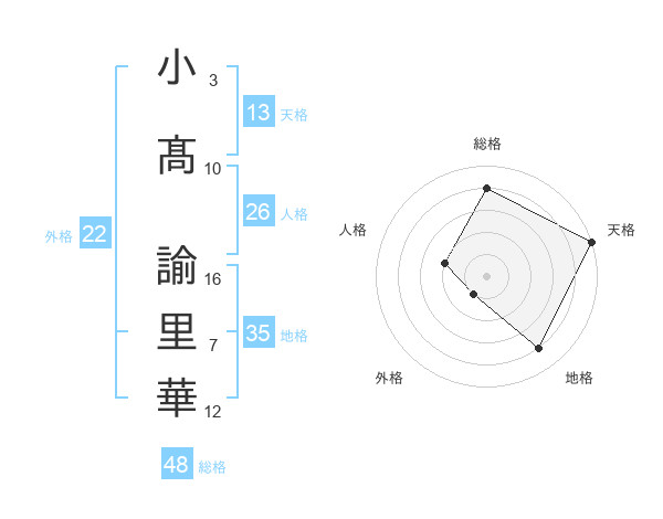 小髙 諭里華さんを姓名の画数から五運を鑑定