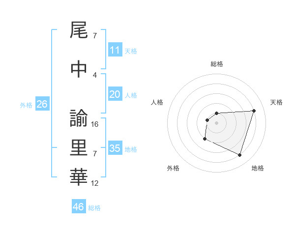 尾中 諭里華さんを姓名の画数から五運を鑑定