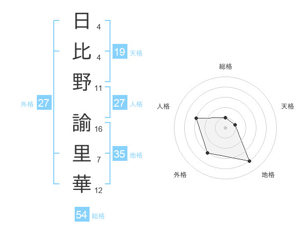 日比野 諭里華さんを姓名の画数から五運を鑑定