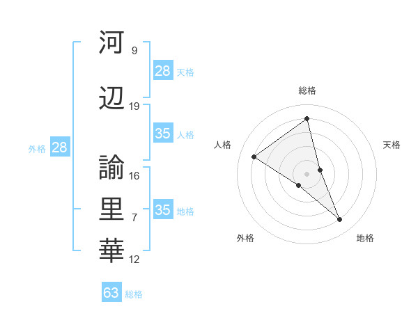 河辺 諭里華さんの天格は28画の1点!