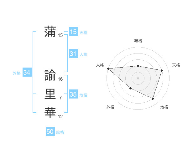 蒲 諭里華さんの外格は34画の2点!