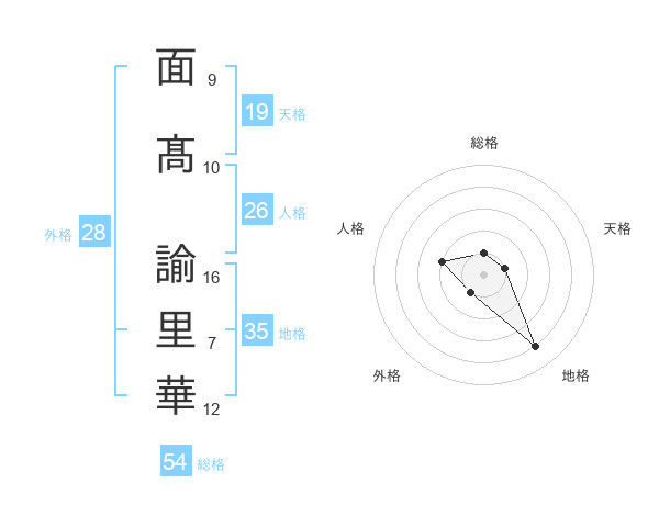 面髙 諭里華さんを姓名の画数から五運を鑑定