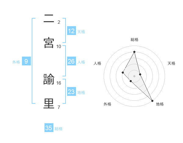 二宮 諭里さんの天格は12画の1点!