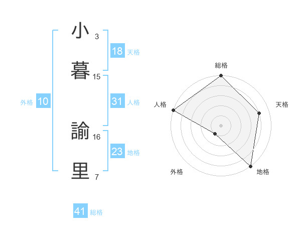 小暮 諭里さんの天格は18画の4点!