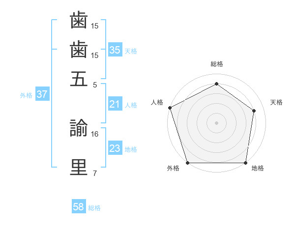 歯歯五 諭里さんの外格は37画の5点!