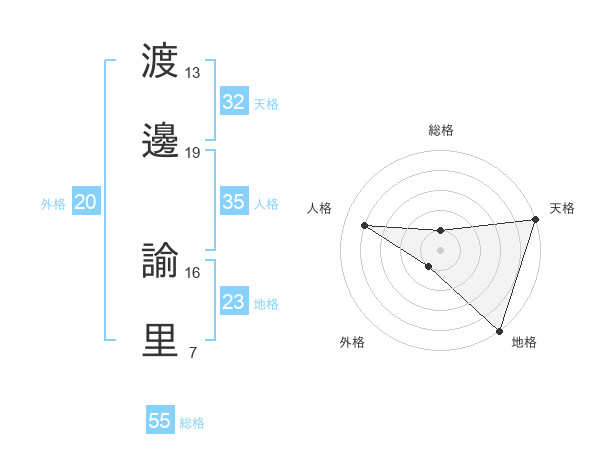 渡邊 諭里さんを姓名の画数から五運を鑑定
