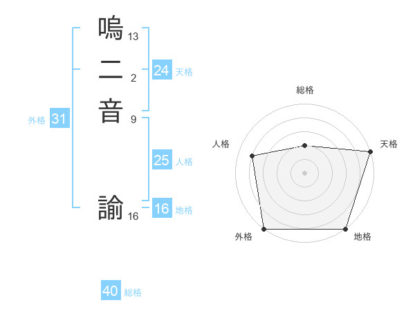 嗚二音 諭さんの天格は24画の5点!