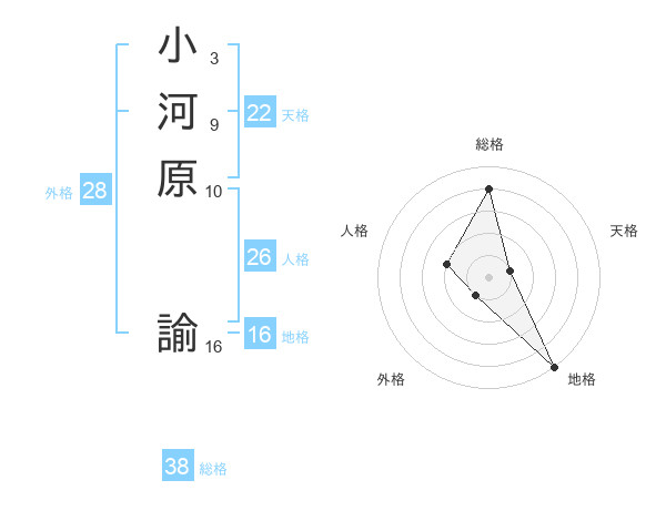 小河原 諭さんの総格は38画の4点!