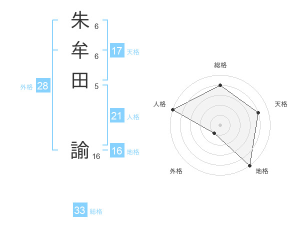 朱牟田 諭さんの天格は17画の4点!