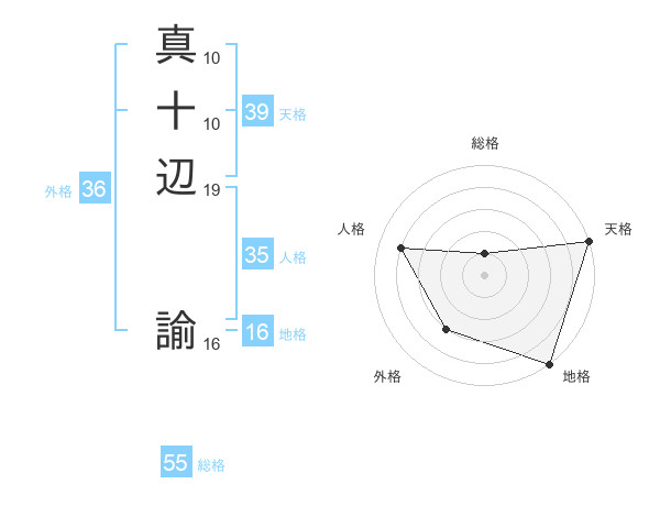 真十辺 諭さんの総格は55画の1点!