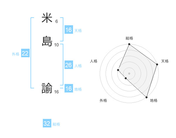 米島 諭さんの天格は16画の5点!