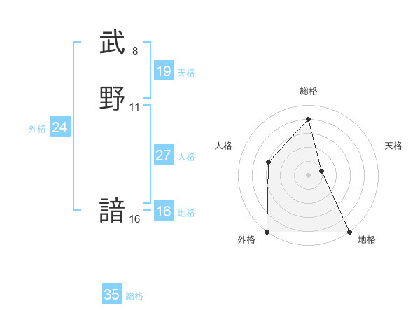 武野 諳さんの総格は35画の4点!
