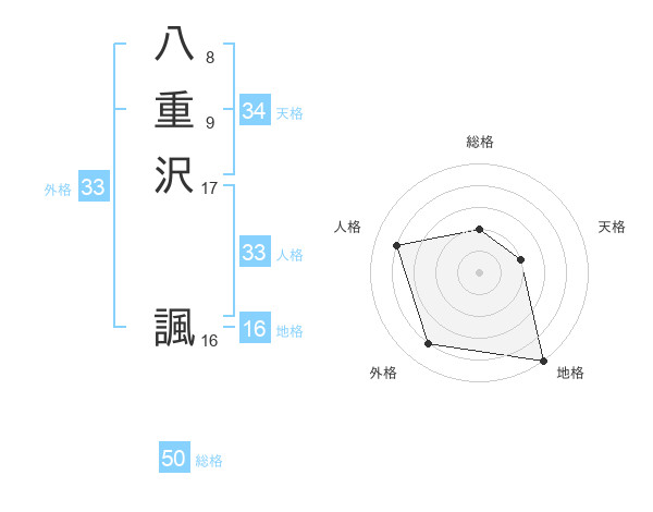 八重沢 諷さんの総格は50画の2点!