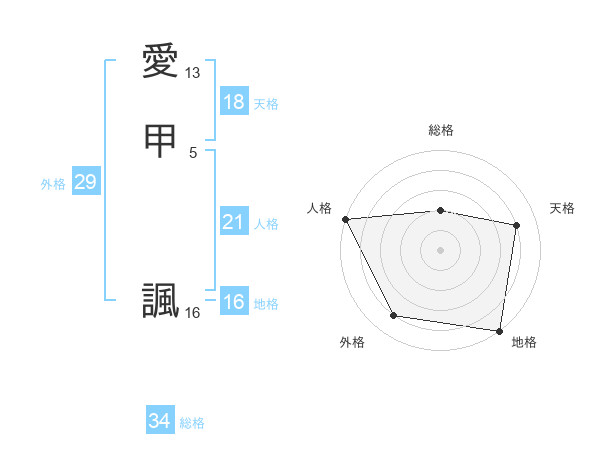 愛甲 諷さんの総格は34画の2点!