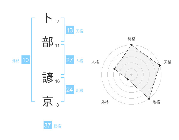 卜部 諺京さんの総格は37画の5点!