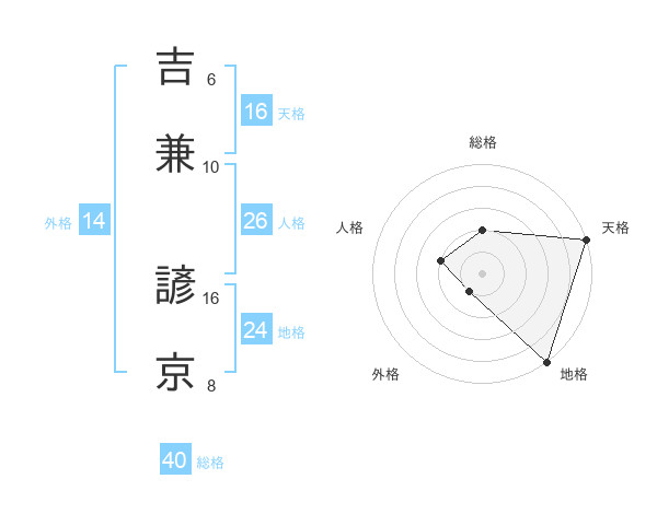 吉兼 諺京さんの天格は16画の5点!