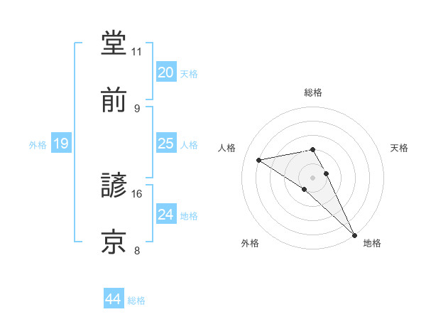 堂前 諺京さんを姓名の画数から五運を鑑定