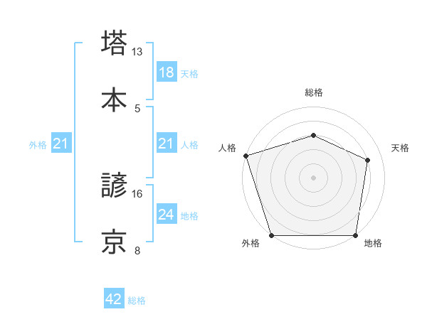 塔本 諺京さんを姓名の画数から五運を鑑定
