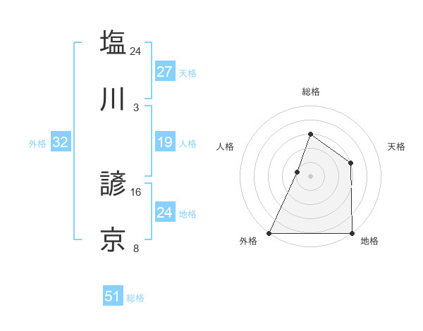 塩川 諺京さんの総格は51画の3点!