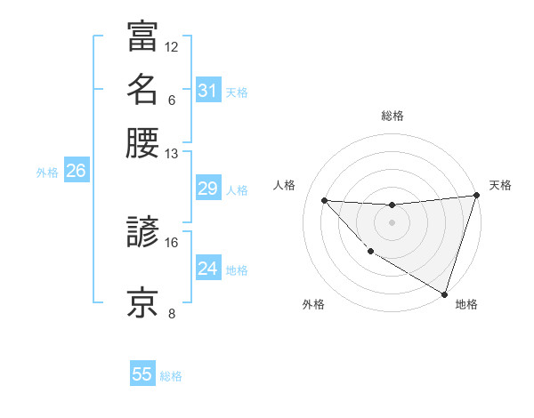 富名腰 諺京さんの総格は55画の1点!