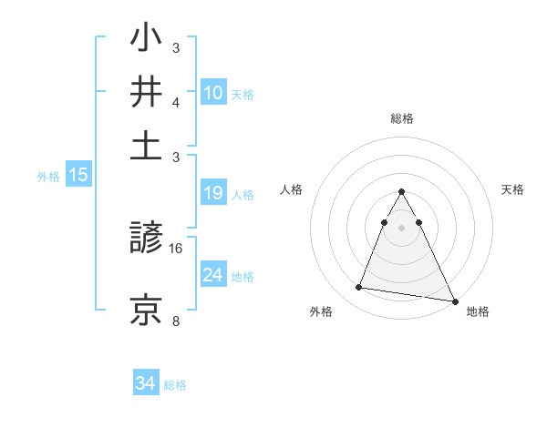 小井土 諺京さんを姓名の画数から五運を鑑定