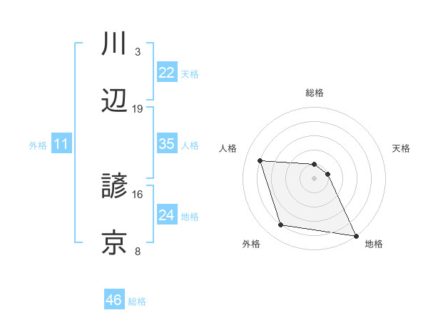川辺 諺京さんの外格は11画の4点!
