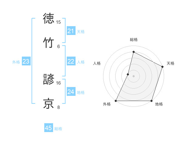 徳竹 諺京さんの総格は45画の4点!