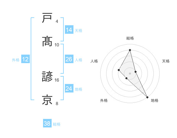 戸髙 諺京さんを姓名の画数から五運を鑑定