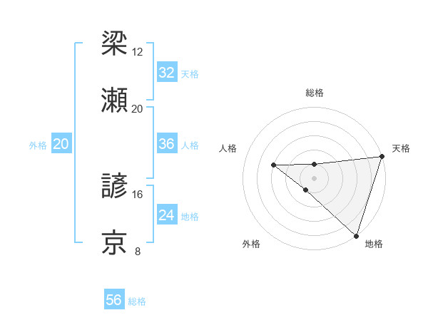 梁瀬 諺京さんを姓名の画数から五運を鑑定