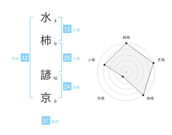 水柿 諺京さんの総格は37画の5点!