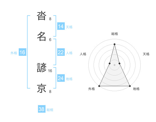 沓名 諺京さんの総格は38画の4点!