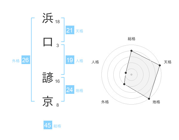 浜口 諺京さんの外格は26画の2点!