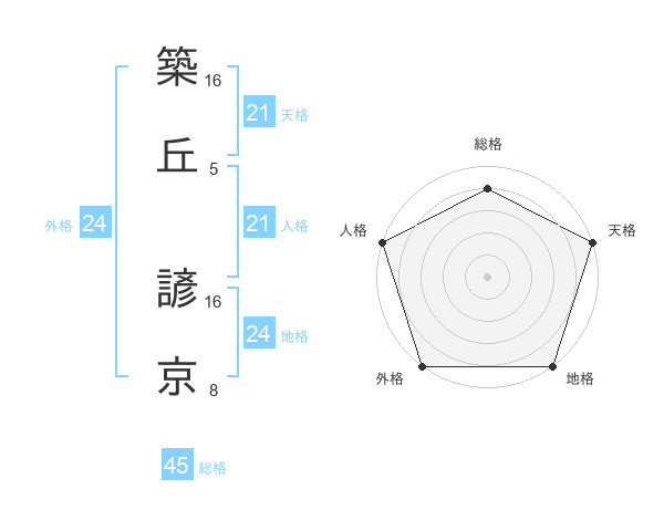 築丘 諺京さんの天格は21画の5点!