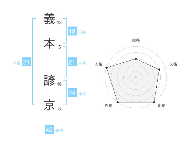 義本 諺京さんの外格は21画の5点!