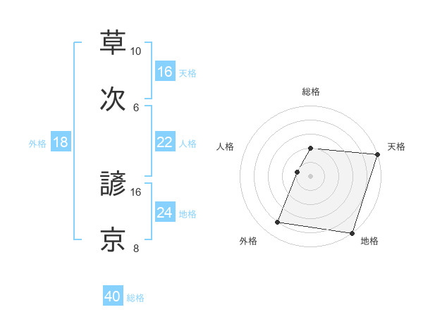 草次 諺京さんの天格は16画の5点!