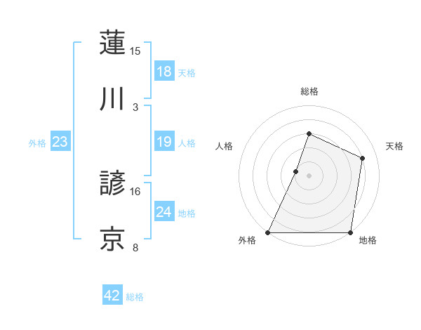 蓮川 諺京さんを姓名の画数から五運を鑑定