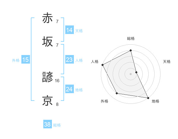 赤坂 諺京さんを姓名の画数から五運を鑑定