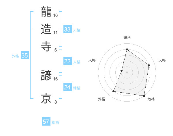 龍造寺 諺京さんの総格は57画の4点!
