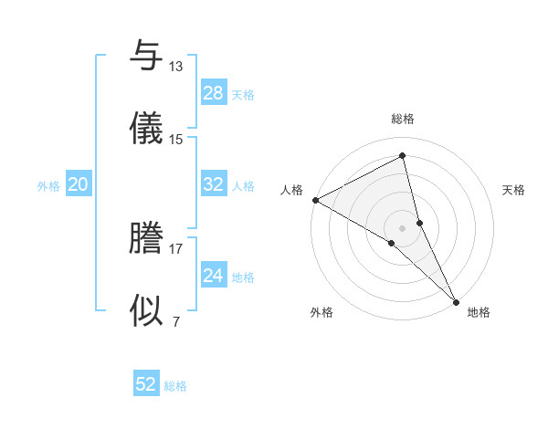 与儀 謄似さんの総格は52画の4点!