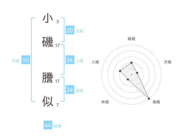 小磯 謄似さんを姓名の画数から五運を鑑定