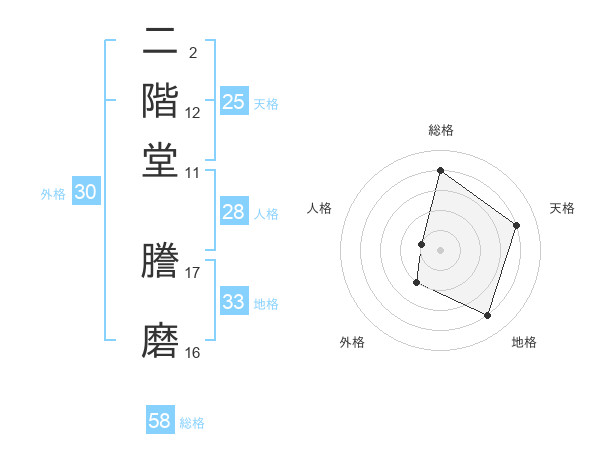 二階堂 謄磨さんの総格は58画の4点!