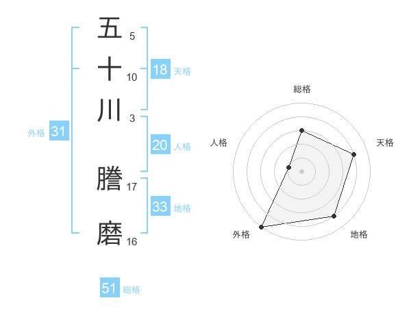 五十川 謄磨さんを姓名の画数から五運を鑑定