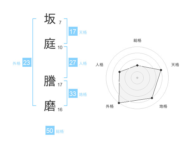 坂庭 謄磨さんを姓名の画数から五運を鑑定
