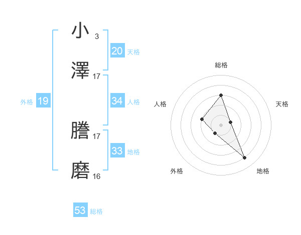 小澤 謄磨さんを姓名の画数から五運を鑑定