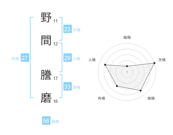 野間 謄磨さんを姓名の画数から五運を鑑定
